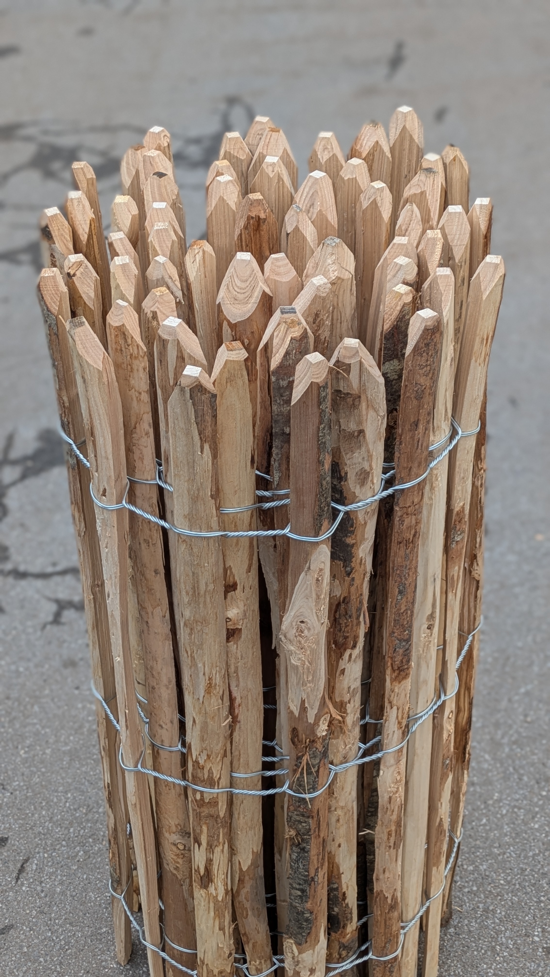 In Frankreich finden Sie diese Staketenzäune sehr häufig als Naturzaun an den Stränden, in England als Cottagezaun oder als Schafzaun. Bei uns ist dieser Zaun nicht nur dekorativ für Ihren Garten, sondern auch beliebt als Tierzaun, Hundezaun und Einzäunung für ein Tiergehege. Das Kastanienholz hat einen sehr hohen Gerbsäureanteil und ist somit gegen Pilz-und Insektenbefall geschützt. Eine zusätziche Imprägnierung oder ein Anschrich mit umweltbelastanden Farben und Anstrichen ist nicht notwendig.