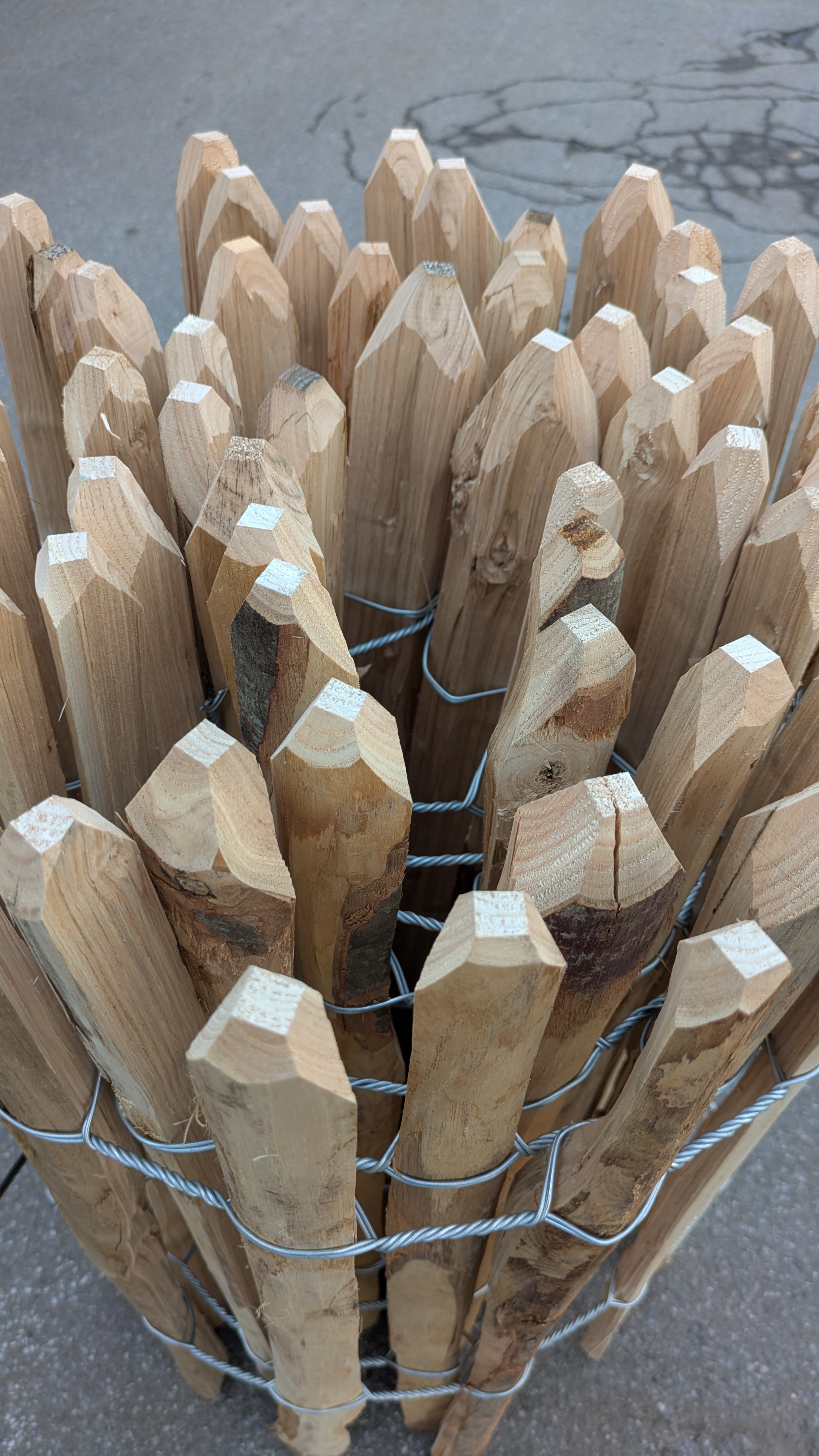 In Frankreich finden Sie diese Staketenzäune sehr häufig als Naturzaun an den Stränden, in England als Cottagezaun oder als Schafzaun. Bei uns ist dieser Zaun nicht nur dekorativ für Ihren Garten, sondern auch beliebt als Tierzaun, Hundezaun und Einzäunung für ein Tiergehege. Das Kastanienholz hat einen sehr hohen Gerbsäureanteil und ist somit gegen Pilz-und Insektenbefall geschützt. Eine zusätziche Imprägnierung oder ein Anschrich mit umweltbelastanden Farben und Anstrichen ist nicht notwendig.